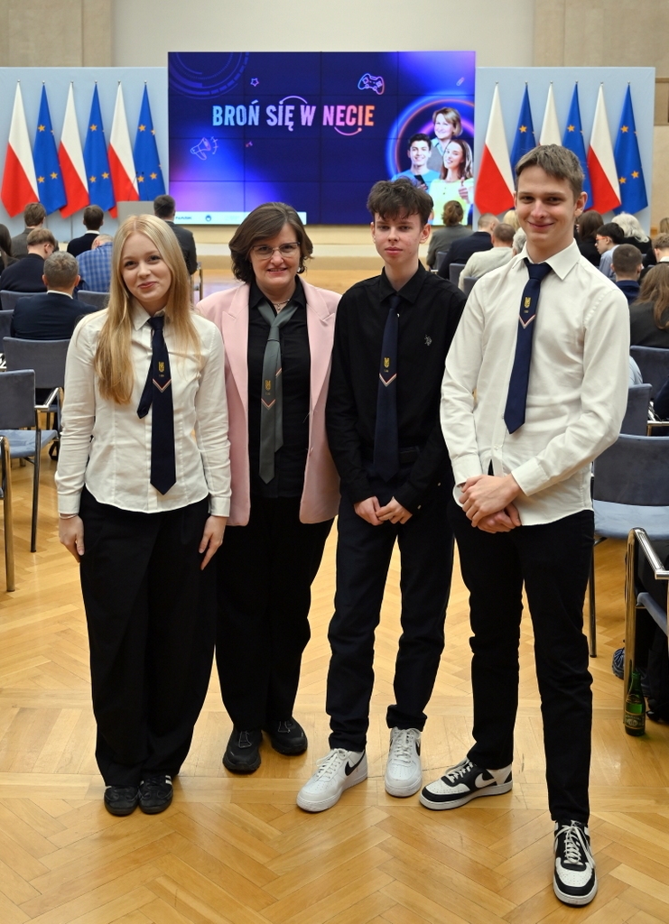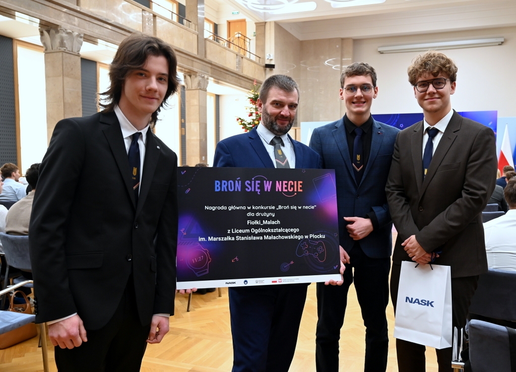 Uroczystość podsumowująca wspólne działania Państwowego Instytutu Badawczego NASK, Ministerstwa Cyfryzacji oraz Agencji Bezpieczeństwa Wewnętrznego miała miejsce w Kancelarii Prezesa Rady Ministrów w Warszawie. W finałowej gali wzięli udział zaproszeni nauczyciele wraz z uczniami oraz goście specjalni: Krzysztof Gawkowski – wicepremier, minister cyfryzacji; Tomasz Siemoniak – minister, koordynator służb specjalnych; płk Adam Ciszewski – zastępca szefa Agencji Bezpieczeństwa Wewnętrznego, Paweł Olszewski – sekretarz Stanu w Ministerstwie Cyfryzacji; Małgorzata Olszewska – zastępca dyrektora NASK ds. Ogólnopolskiej Sieci Edukacyjnej, której zespół był odpowiedzialny za organizację i realizację konkursu, oraz Katarzyna Nosalska – dyrektor Centrum Rozwoju Kompetencji Cyfrowych w Ministerstwie Cyfryzacji. Wysłuchaliśmy przemówień i podziękowań skierowanych do uczniów i nauczycieli wygłoszonych przez przedstawicieli wyżej wymienionych organizacji. Oprócz ciepłych słów uznania były uściski dłoni i pamiątkowe zdjęcia. Wydarzenie to było relacjonowane na żywo w Internecie, a następnie w wieczornych wiadomościach telewizji polskiej. To niezapomniane i satysfakcjonujące przeżycie.