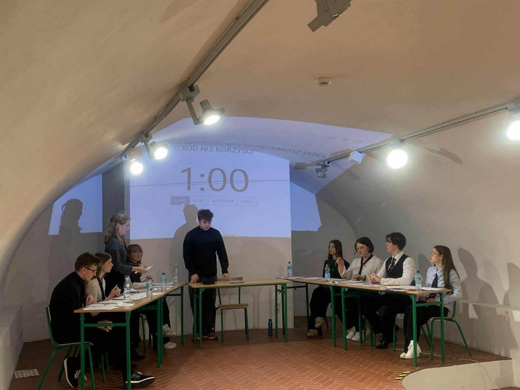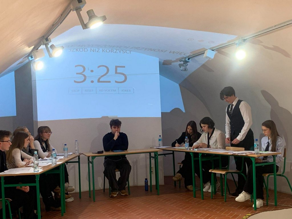 Efekty pracy naszego Koła niektóre klasy miały okazję zobaczyć w ostatni piątek (13.02.26), kiedy to przeprowadziliśmy debatę oksfordzką na temat “Zjawisko idoli młodzieżowych przynosi więcej szkód niż korzyści”. Odbyły się dwie debaty na ten temat, w których wystąpiły trzy drużyny. Jedna z nich miała zadanie trudniejsze od pozostałych, bo wystąpiła aż w dwóch debatach. W jednej jako PROPOZYCJA w drugiej jako OPOZYCJA. Wszystkim uczestnikom i drużynom gratulujemy przygotowania i zaangażowania.