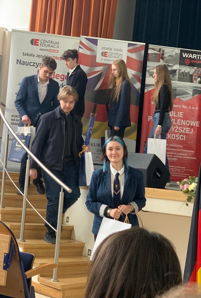 Wszyscy reprezentanci Małachowianki z języka niemieckiego zostali laureatami konkursu. Alicja Seifert zajęła 1 miejsce, Jakub Żółtowski-2 miejsce, a Patryk Janiak -3 miejsce.