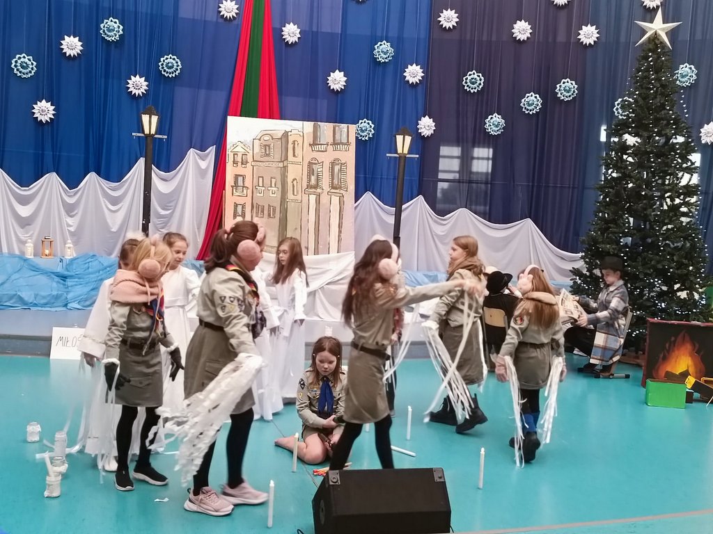 Wydarzenie poprzedziło przedstawienie pt.: „Dziewczynka z zapałkami”, które wprowadziło zgromadzonych w atmosferę refleksji i wrażliwości na drugiego człowieka. Po jego zakończeniu harcerze przekazali płomień – symbol pokoju, dobra, miłości i nadziei – który został następnie przywieziony do naszej szkoły.