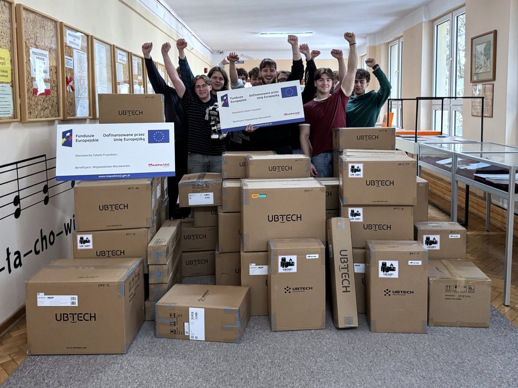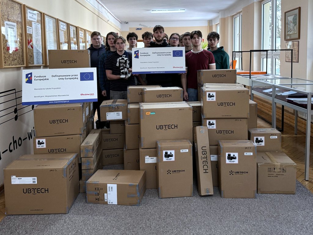 W ramach projektu „Mazowiecka Szkoła Przyszłości” szkoła otrzymała 5 robotów humanoidalnych wraz z czujnikami oraz 5 zestawów do składania robotów.