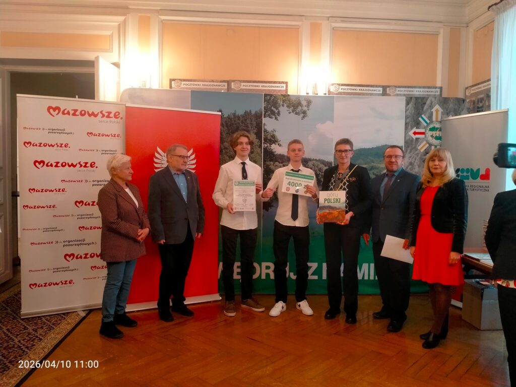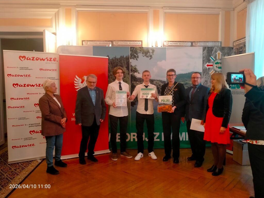 Uroczyste rozdanie nagród i dyplomów odbyło się 10 kwietnia 2026 w siedzibie Mazowieckiego Forum Oddziałów PTTK w Warszawie. Naszą Szkołę godnie reprezentowali uczniowie Mateusz Gralewski i Franciszek Piotrowski z klasy 1d z opiekunem Joanną Atlak.