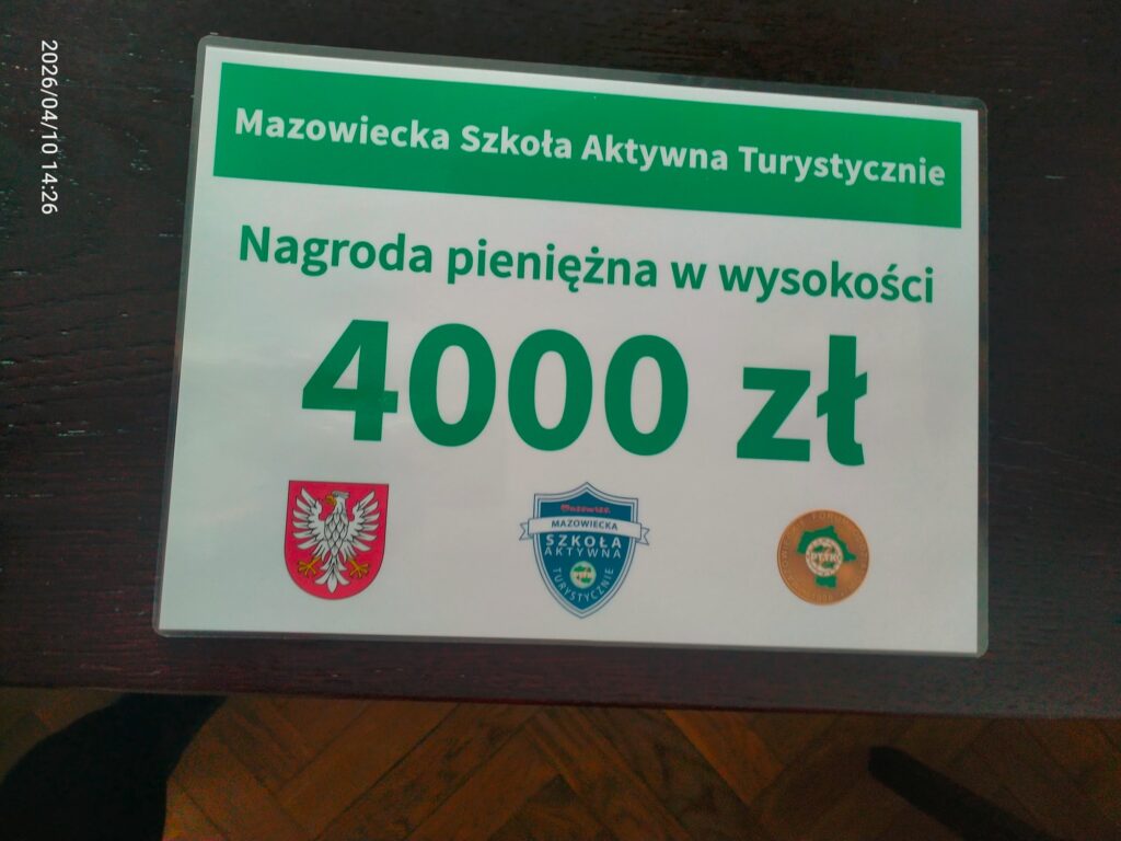 W IX edycji konkursu „Mazowiecka Szkoła Aktywna Turystycznie” kolejny raz zostaliśmy nagrodzeni srebrną tarczą oraz nagrodą pieniężną 4000 zł, za działalność turystyczno – krajoznawczą oraz aktywność kulturalno – oświatową, w kategorii szkół ponadpodstawowych.