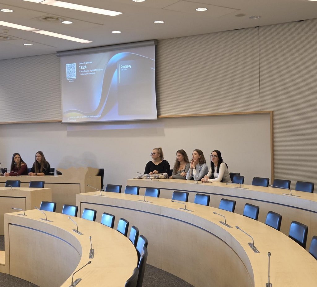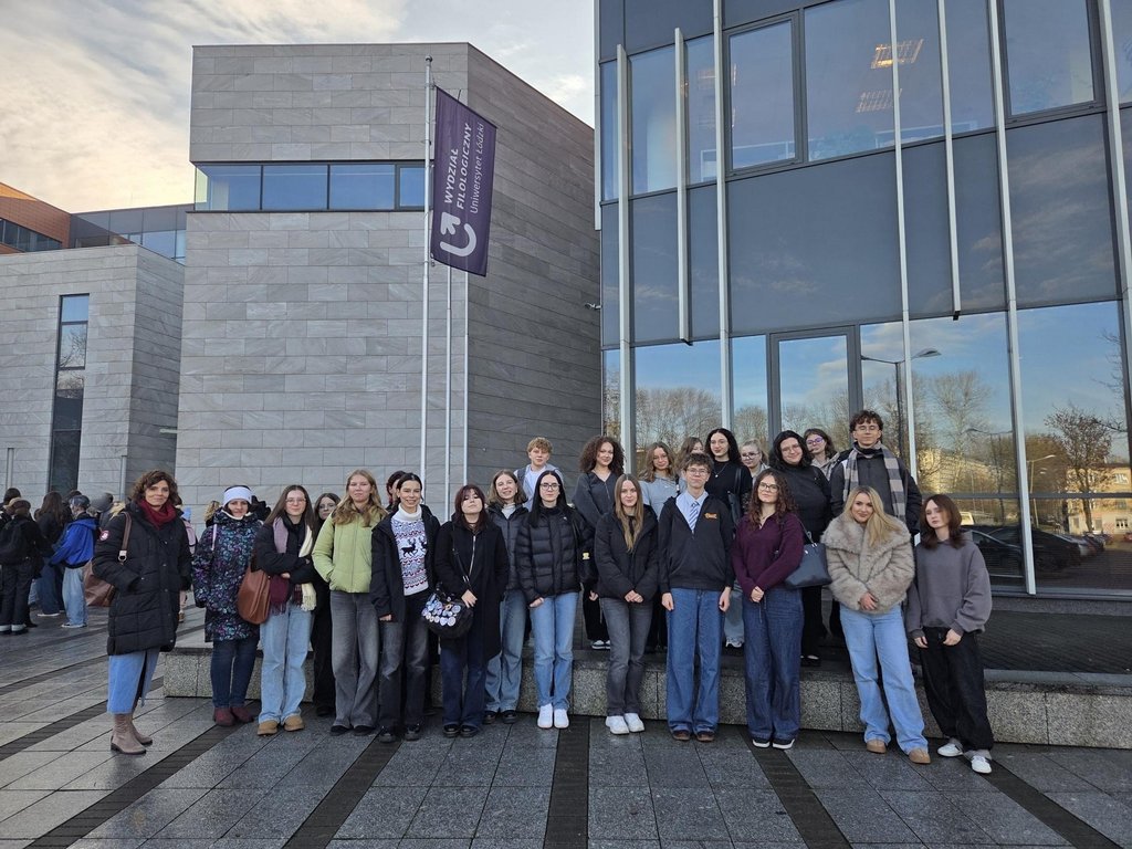 Uczniowie p. Karolina Jeznach szlifowali swoje umiejętności językowe na zajęciach prowadzonych przez wykładowców i studentów UŁ. Mieliśmy  również możliwość zwiedzania budynku Wydziału i zobaczenia jak wygląda m.in. sala Rady Wydziału czy też studio telewizyjne.