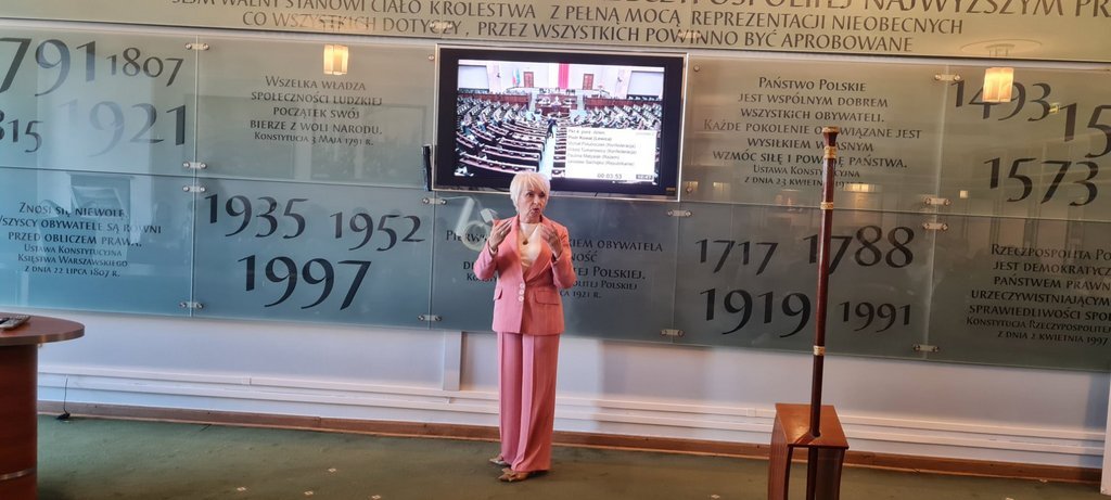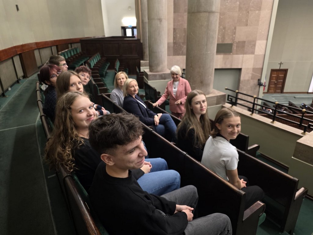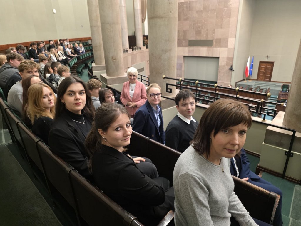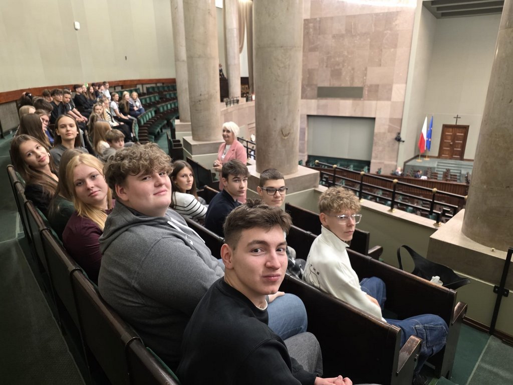 Uczniowie mieli możliwość zwiedzenia budynku polskiego parlamentu z przewodnikiem oraz obserwowania obrad z galerii sali posiedzeń Sejmu. Następnie w Sali Konstytucji 3 Maja pani posłanka opowiedziała nam o funkcjonowaniu parlamentu i pracy posła zarówno w czasie posiedzeń plenarnych oraz w komisjach sejmowych, jak i w swoim okręgu wyborczym w czasie spotkań z wyborcami. Uczniowie mieli też możliwość zadawania pytań o interesujące ich kwestie, np. o uposażenie poselskie😊Na koniec zostaliśmy zaproszeni na obiad w restauracji sejmowej.